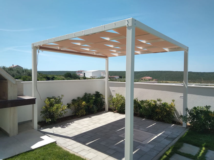 Ova luksuzna tenda omogućuje ugodan boravak na otvorenom tijekom svih godišnjih doba. Pomične lamele omogućuju jednostavno podešavanje svjetlosnih i zračnih uvjeta. Pokreće je elektromotor tvrtke Somfy. Ambijent dodatno obogaćuje LED rasvjeta.